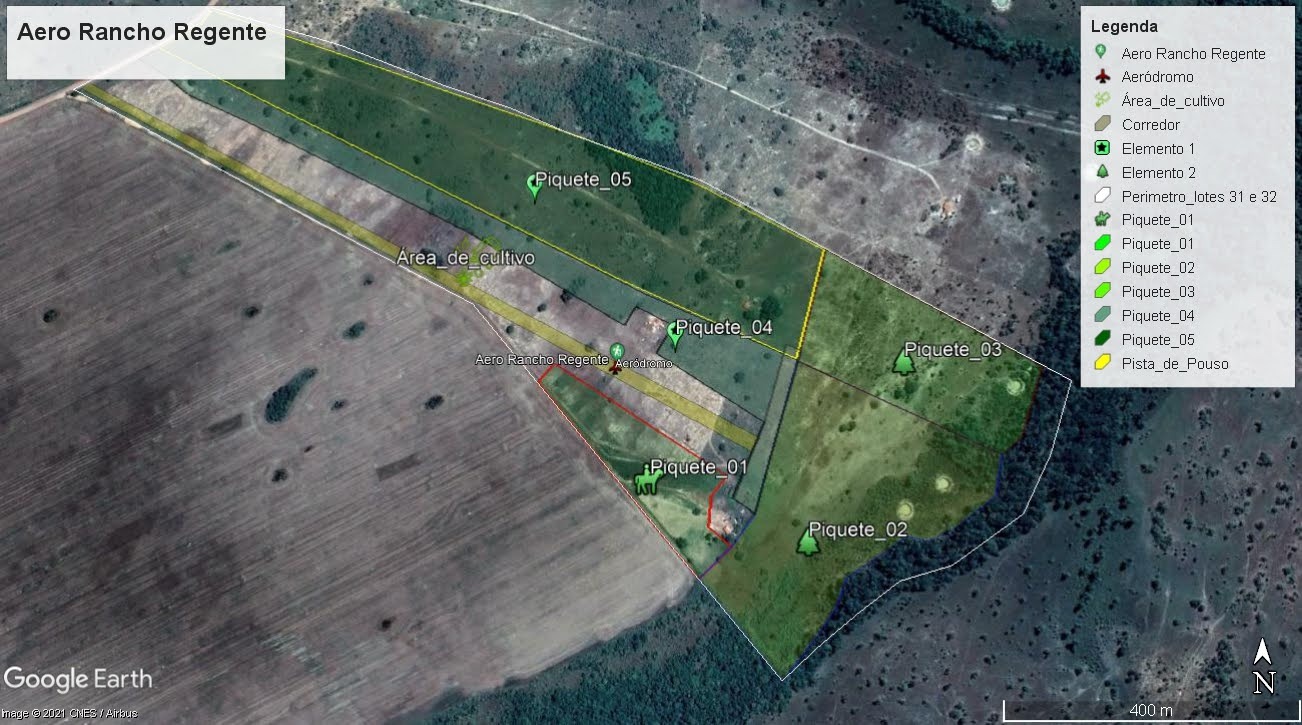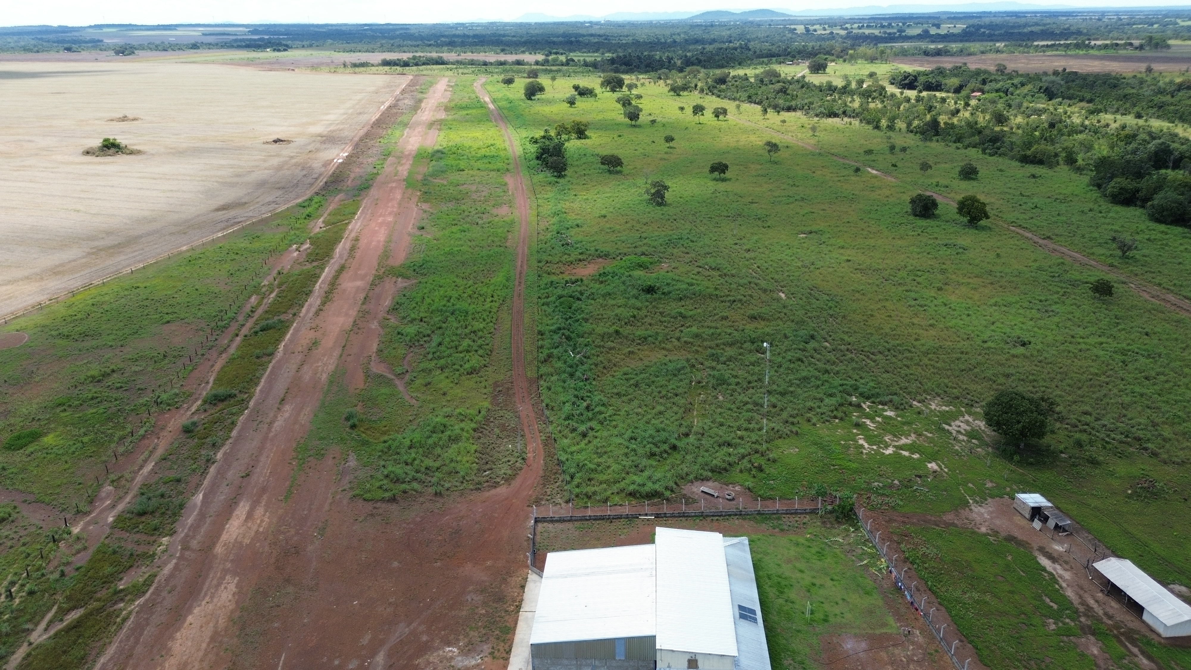 Chácara com excelente infra estrutura, contando com pista de pouso medindo 1.100m e hangar para aeronaves medindo 12,5m x 15m vão livre de entrada com altura máxima de 3,80m. Pista com excelente área de aproximação.
